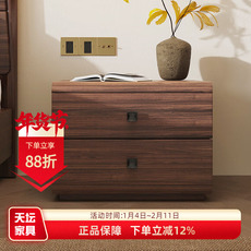 全实木床头柜 新中式床头柜卧室收纳柜抽屉式床边柜-木舍
