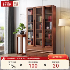 【摩卡】天坛书柜带门榆木板木家用组合衣柜新中式落书架带抽屉
