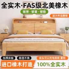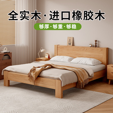 全实木床1米8双人床卧室1.5米原木色床出租房家用橡胶木