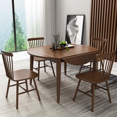 全实木餐桌椅组合伸缩折叠圆桌现代简约家用饭桌小户型可
